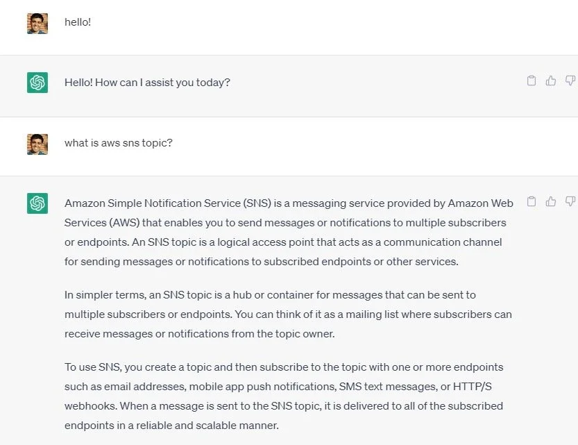 I knew the answer to the first two questions already. I just did not want to type out an explanation and think critically of an example of AWS SNS for a Zoom chat question when supporting my colleague’s lesson.