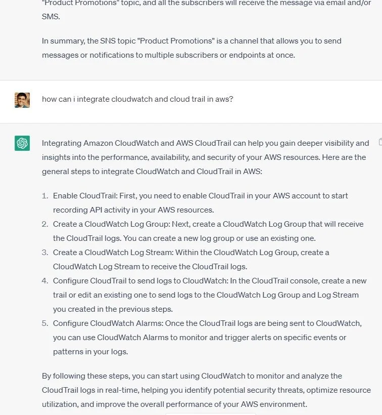 GPT gave me step by step instructions on how to implement the two specified AWS technologies, which I then shared with the class to help them in their AWS re/Start training.